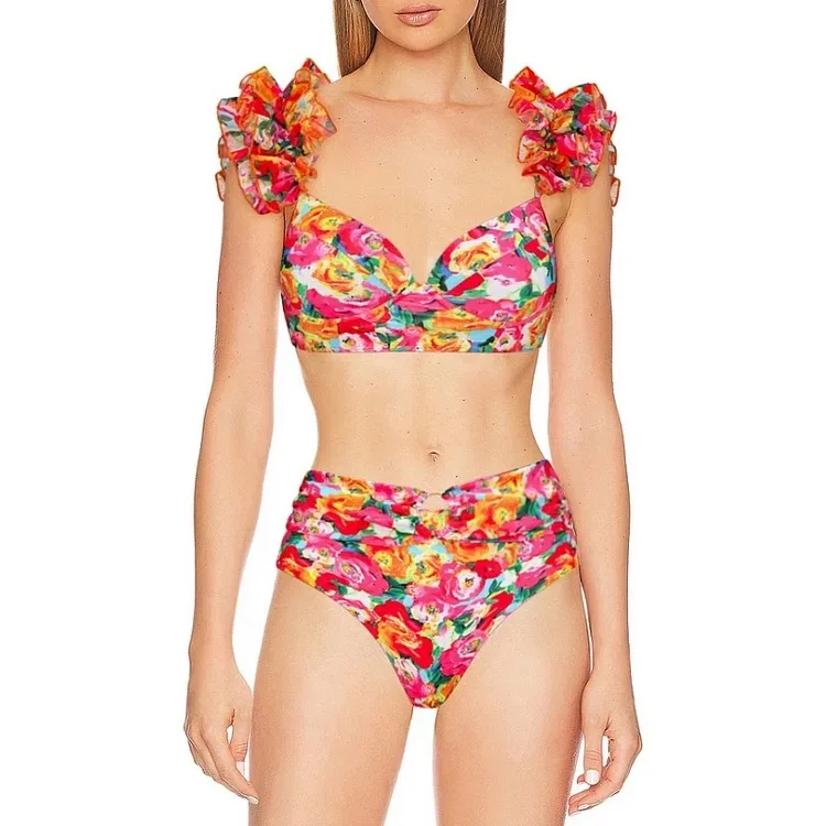 2024 Women's Swimsuit Vintage Off Shoulder Printed One Piece Bathing Suits Bikini Set Swimsuit Sarong Summer Swimwear Beachwear